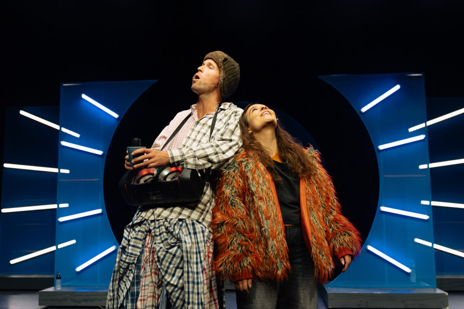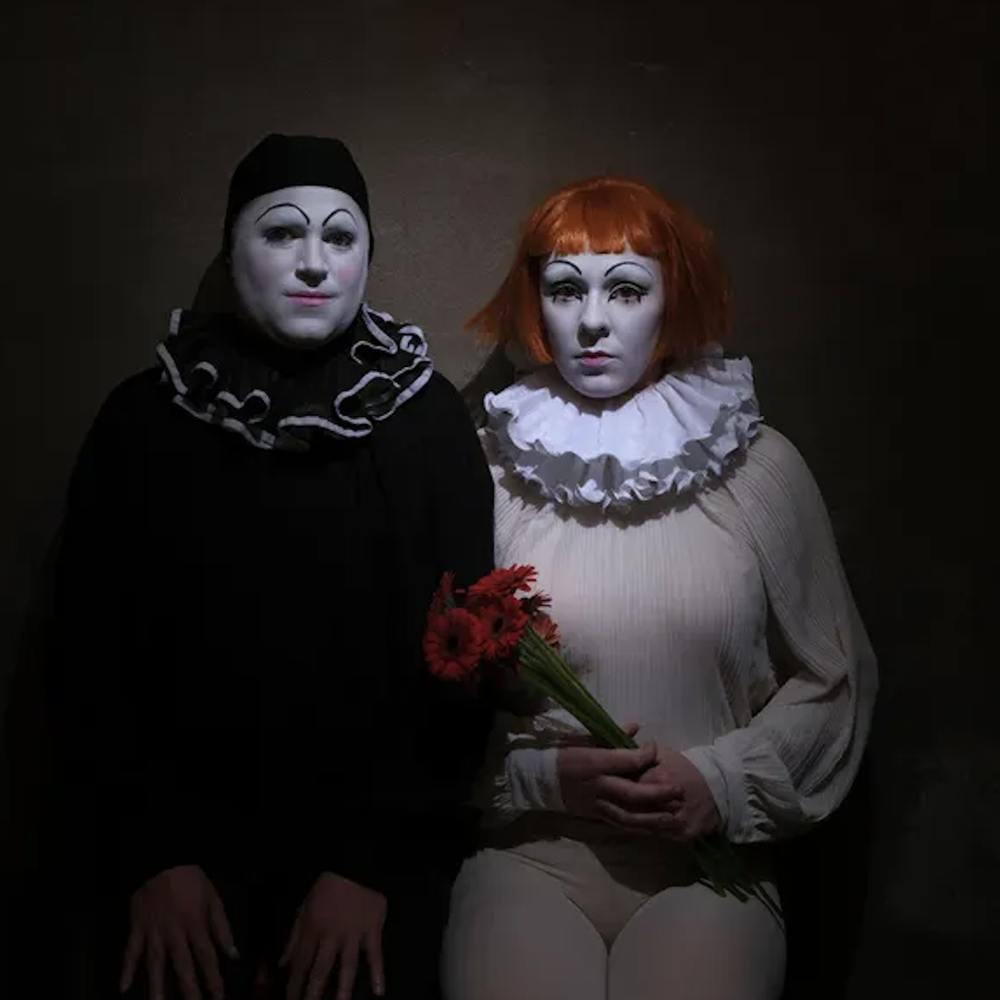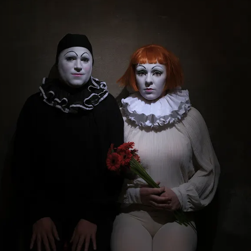 Als je binnenstapt bij We’re all alone in this together (Frascati Producties) lijkt het even alsof je in een absurdistische clownsshow belandt: Kim Karssen en Elias De Bruyne in overgrote schoenen, poeder op het gezicht, cartooneske geluidseffecten en datescènes vol ongemak. Maar dan kantelt de sfeer en blijkt onder die luchtigheid iets snijdends te liggen. Het gaat over macht, over rollen die je onbewust aanneemt en over hoe snel je verstrikt raakt in verwachtingen die eigenlijk niet van jou zijn. Een tragikomische performance over jezelf wapenen tegen de draken op het slagveld van de liefde.