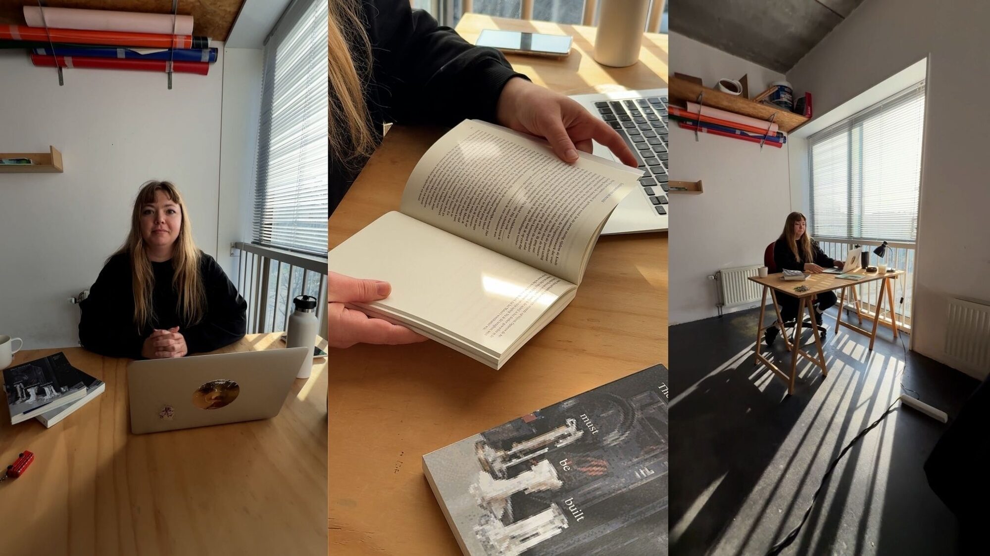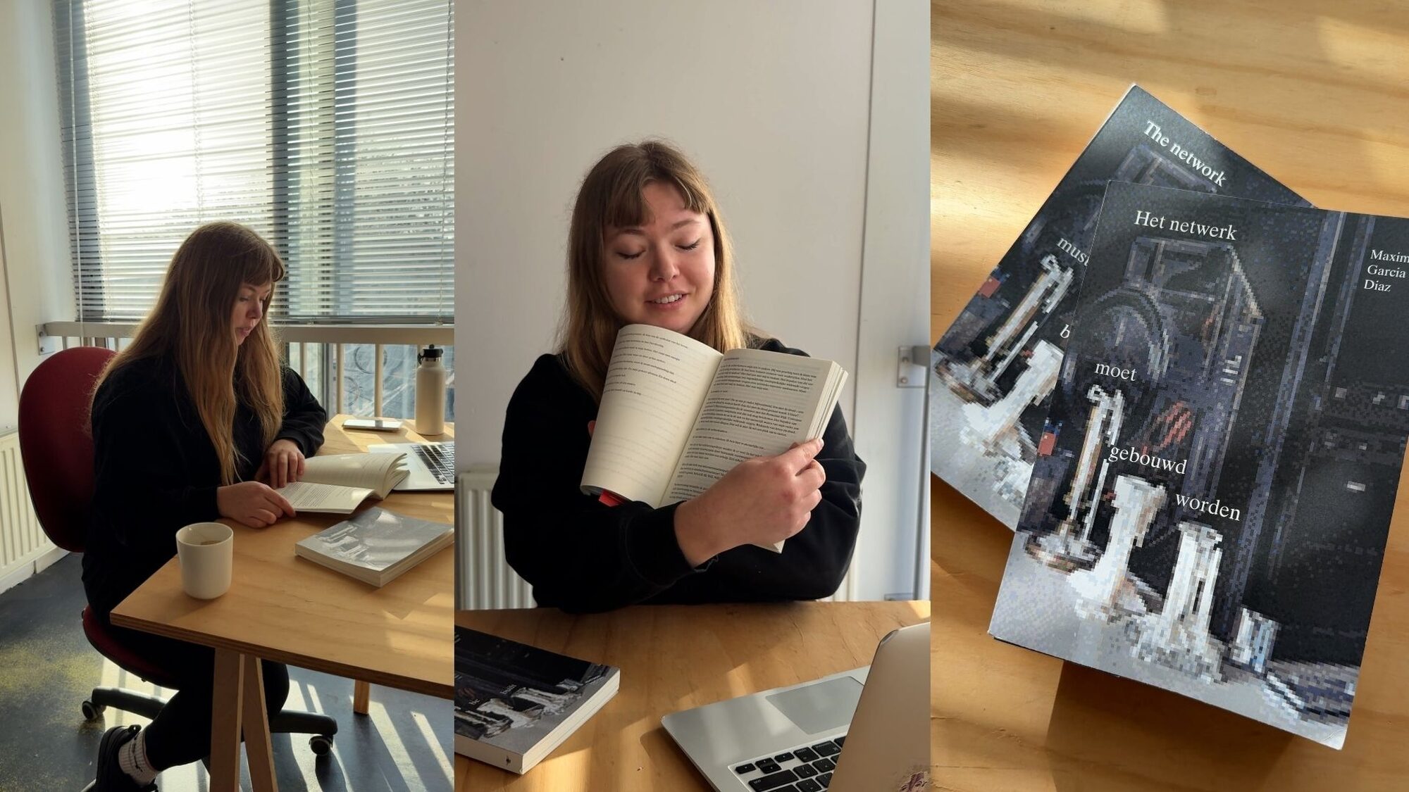 Het is Poëzieweek en Maxime Garcia Diaz zit aan haar bureau tussen de verhuisdozen. We zijn in haar werkruimte, of zoals ze zichzelf meteen corrigeert: “Schrijvers noemen dat een werkplek. Maar ik deel deze ruimte met kunstenaars en zij noemen het een studio.” Ze glimlacht. “Het is de laatste week dat we hier zitten en het voelt nog industriëler dan het al voelde.” Op het bureau ligt haar tweede bundel Het netwerk moet gebouwd worden, evenals de Engelse versie The network must be built. Een boek dat fysiek nauwelijks te negeren is. “Hij werd door iemand kloek genoemd,” zegt ze. “Een mooie term voor een dikke poëziebundel.”