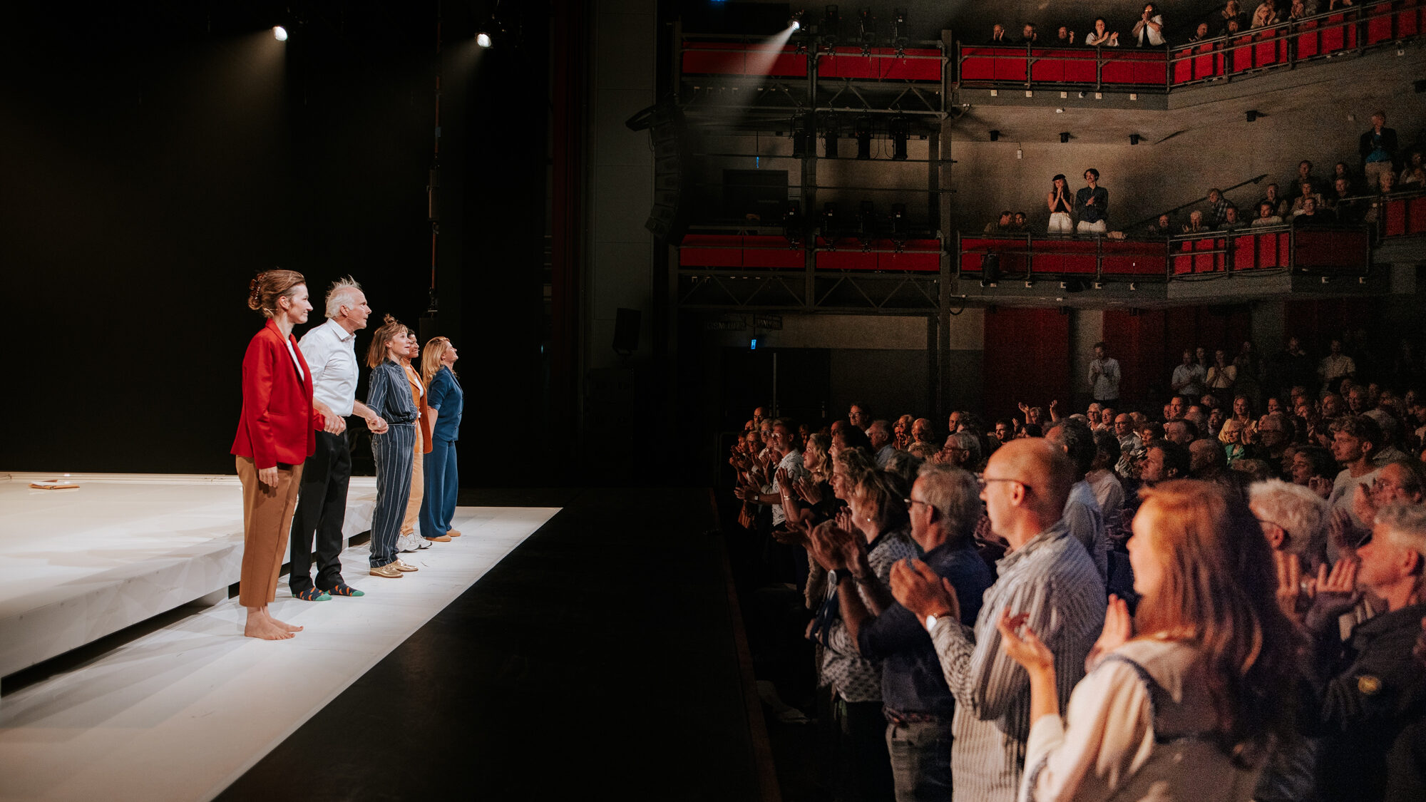 Om die scholenversie mogelijk te maken zijn de makers een crowdfunding gestart via Voordekunst. Dat is nodig omdat scholen geen budget hebben om voorstellingen te financieren. De Wit is verrast door de reacties van mensen die al gedoneerd hebben op de crowdfundingpagina. Onder de donaties verschijnen korte maar veelzeggende berichten. “Belangrijk onderwerp! Succes in de klas,” schrijft iemand. Een ander benadrukt: “Het is heel belangrijk om onze jongeren te betrekken bij discussies over de toekomst van onze samenleving.” Wie de voorstelling al heeft gezien, herkent meteen waarom die stap naar het klaslokaal logisch voelt. “Gister dan eindelijk de voorstelling gezien. Zo’n gelaagde kijk op de klimaatcrisis,” schrijft een donateur. Veel reacties draaien uiteindelijk om dezelfde gedachte: dat jongeren bij dit gesprek moeten worden betrokken. “Het is van belang voor hun toekomst.” schrijft iemand.