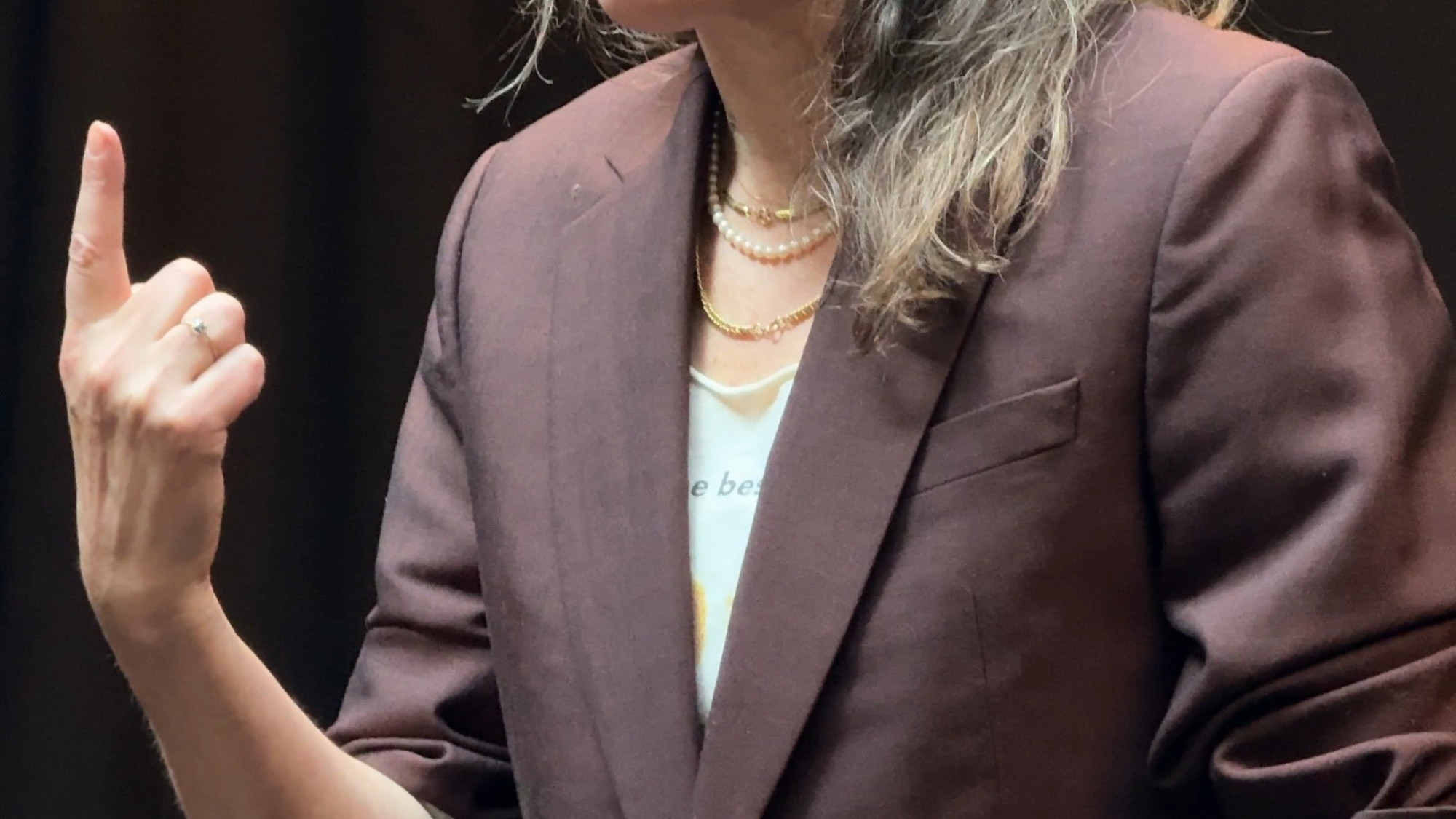 In Nog Niet Afgelast komen twee vrouwen samen die op het eerste gezicht uit totaal verschillende werelden lijken te komen. “Hannah Arendt, de filosoof. En Thea Kapteijn, de creatief producent van de voorstelling. Het gaat eigenlijk over hoe die twee lijnen met elkaar resoneren.” Over Hannah Arendt hoeft Kraakman niet encyclopedisch te doen. Liever vertelt ze wat haar raakt. “Wat ik het mooiste aan Hannah Arendt vind, is eigenlijk haar pleidooi om zelf te blijven denken. En om jezelf en elkaar beter te leren begrijpen.” Ook in Thea herkent ze iets daarvan. “Zij probeert tegen de klippen op het goede te doen.”