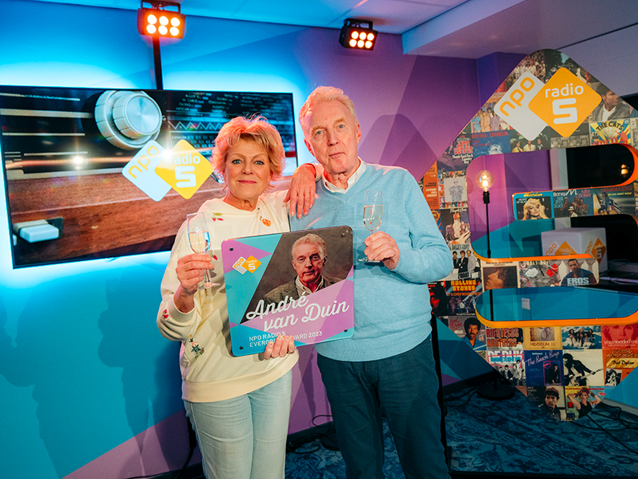 André van Duin is onderscheiden met de NPO Radio 5 Evergreen Award. Hij ontving de prijs uit handen van zijn goede vriendin Simone Kleinsma tijdens het NPO Radio 5-programma BertOp5.