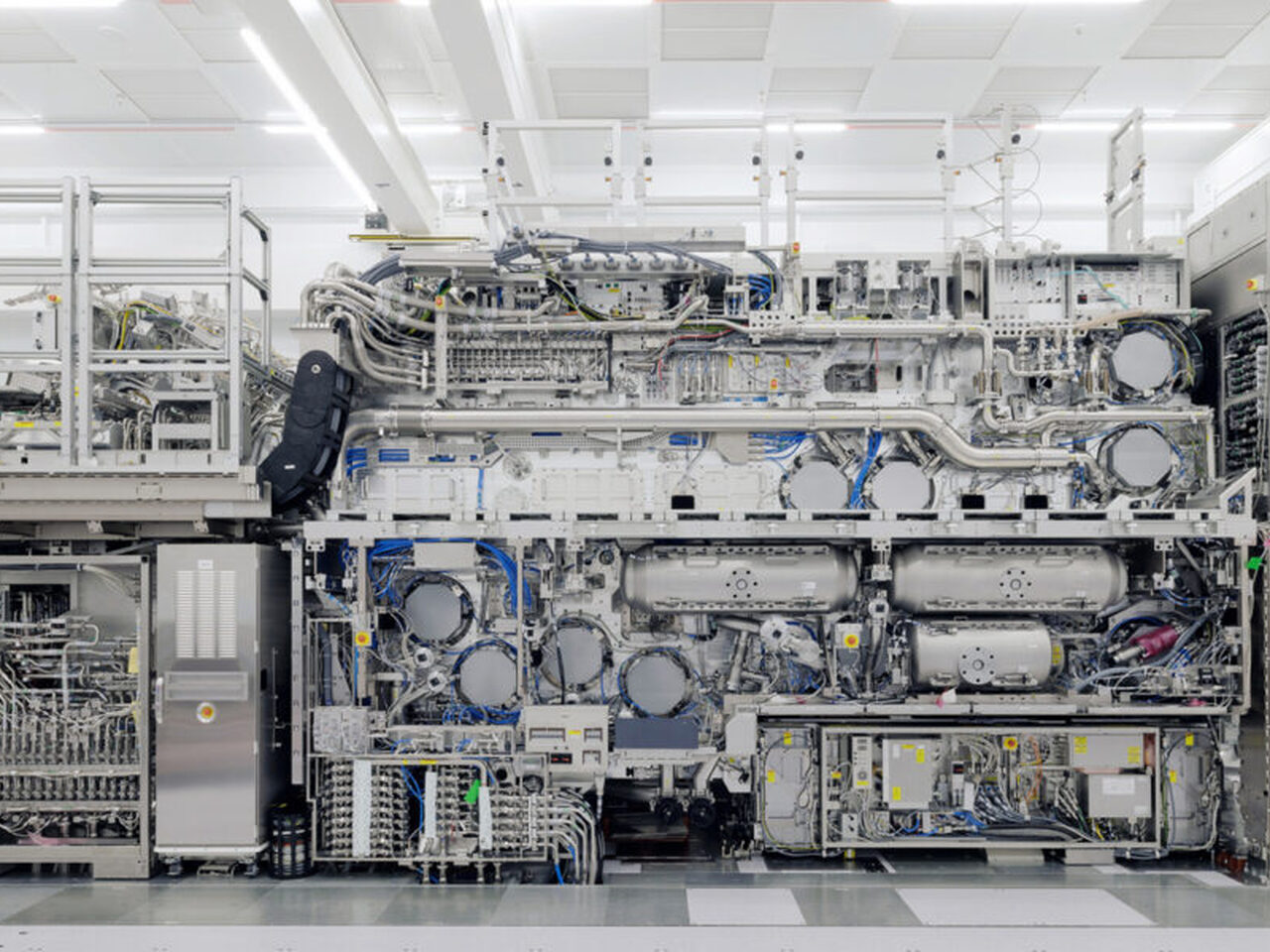 In de 'cleanroom' van ASML wordt alles en iedereen buiten gehouden: elk stofje is te veel en spionnen worden al helemaal geweerd. Bij hoge uitzondering mocht de NOS naar binnen, om het apparaat te bekijken waar wereldwijd zoveel om te doen is.