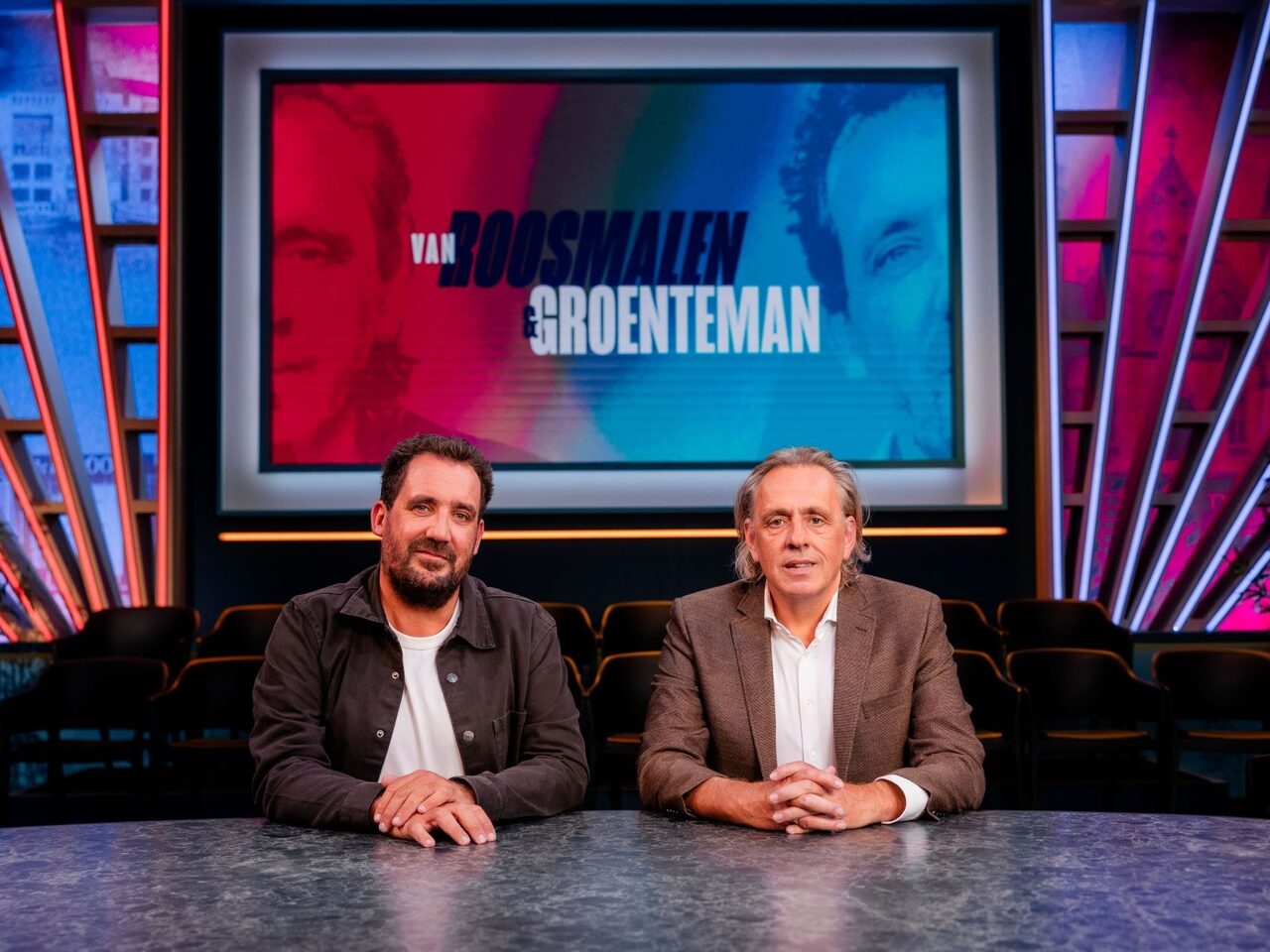 Gijs Groenteman en Marcel van Roosmalen zijn weer terug op tv met hun scherpe, uitgesproken maar vooral humoristische blik op de media. Want socials, radio, podcasts, print en televisie brengen onophoudelijk informatie, meningen, verhalen, emoties en ergernissen. In Van Roosmalen & Groenteman bespreken ze samen met uiteenlopende gasten het medianieuws van de week.