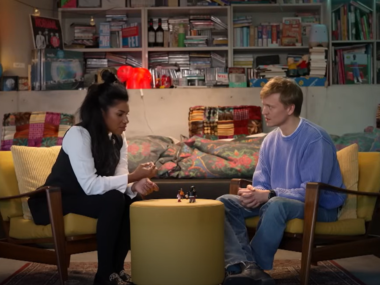 In De valse start van… bespreekt Nicolaas Veul met presentator Natasja Gibbs over haar jeugd en de gevolgen van haar valse start aan de hand van een familieopstelling met Playmobil-poppetjes.