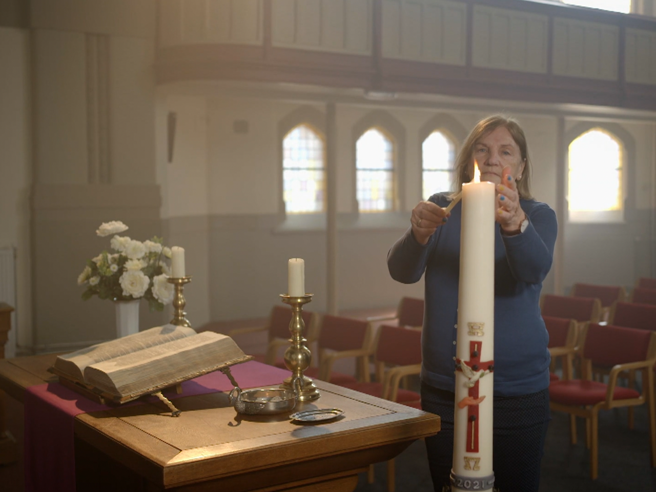 Dominee Suzanne Freytag verwelkomt ons in de kerk die overeind is blijven staan - Kijk op NPO Start